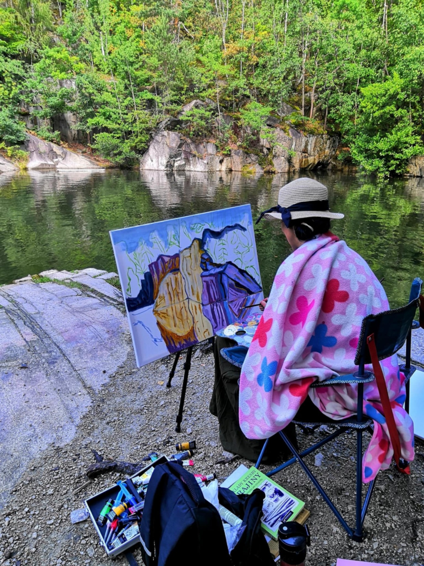 Tento zatopený lom se nachází v Jeseníkách v České republice. Obraz je malován v plenéru.